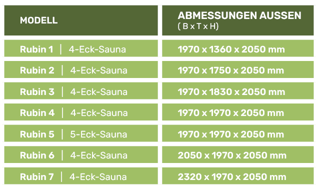 Solide 45 mm starke Fichte-Blockbohlen in Elementbauweise - verfügbar in sieben Größen: Unsere RUBIN ist der solide Dauerbrenner unserer Manufaktur. Nicht zuletzt durch ihre gute Verfügbarkeit und geringe Lieferzeit. Jedes RUBIN-Paket kommt als All-Inclusive-Paket mit Tür, Inneneinrichtung und Zubehör. Unser Modell Nr. 5 sogar als 5-Eck Ausführung.
